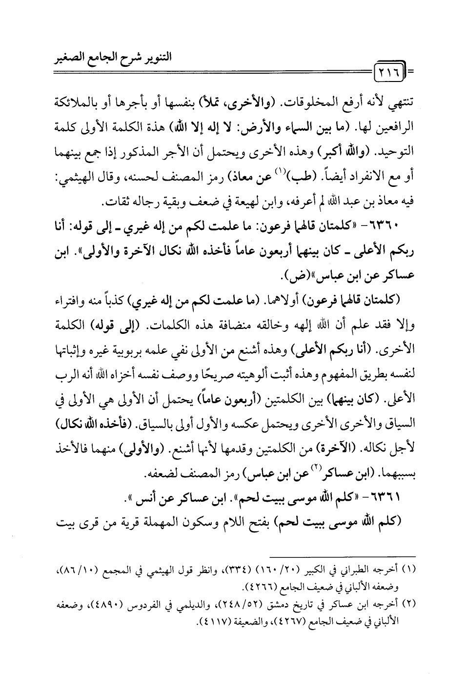 (¬2) أخرجه ابن عساكر في تاريخ دمشق (52/ 248)، والديلمي في الفردوس (4890)، وضعفه الألباني في ضعيف الجامع (4267)، والضعيفة (4117).