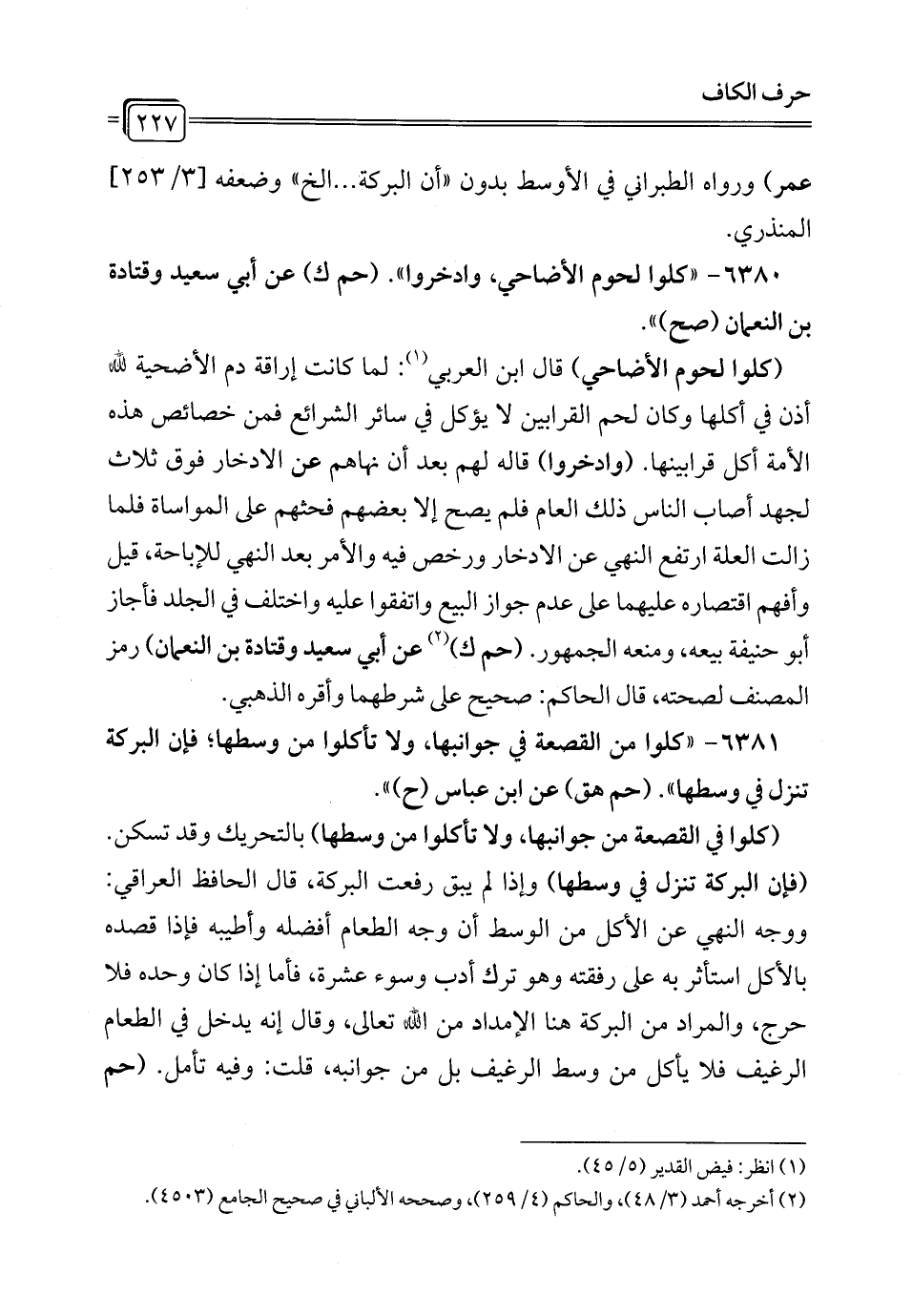 6380 - "كلوا لحوم الأضاحي، وادخروا". (حم ك) عن أبي سعيد وقتادة بن النعمان (صح) ".