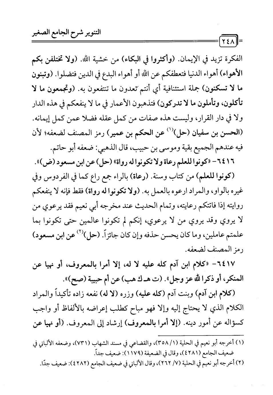 (¬2) أخرجه أبو نعيم في الحلية (7/ 262)، وقال الألباني في ضعيف الجامع (4282): ضعيف جدًا.