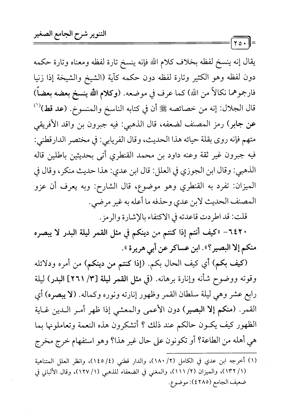 6420 - "كيف أنتم إذا كنتم من دينكم في مثل القمر ليلة البدر لا ببصره منكم إلا البصير؟ ". ابن عساكر عن أبي هريرة".