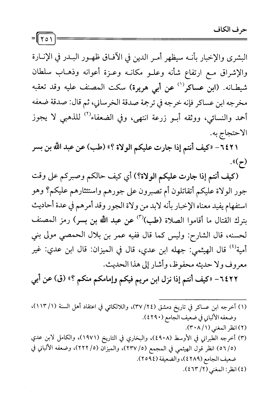 6421 - "كيف أنتم إذا جارت عليكم الولاة؟ " (طب) عن عبد الله بن بسر (ح) ".