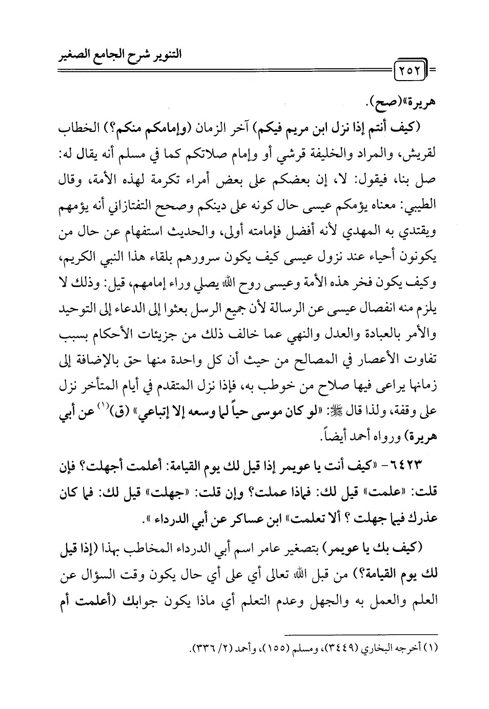 6423 - "كيف أنت يا عويمر إذا قيل لك يوم القيامة: أعلمت أجهلت؟ فإن قلت: "علمت" قيل لك: فماذا عملت؟ وإن قلت: "جهلت" قيل لك: فما كان عذرك فيما جهلت؟ ألا تعلمت" ابن عساكر عن أبي الدرداء".