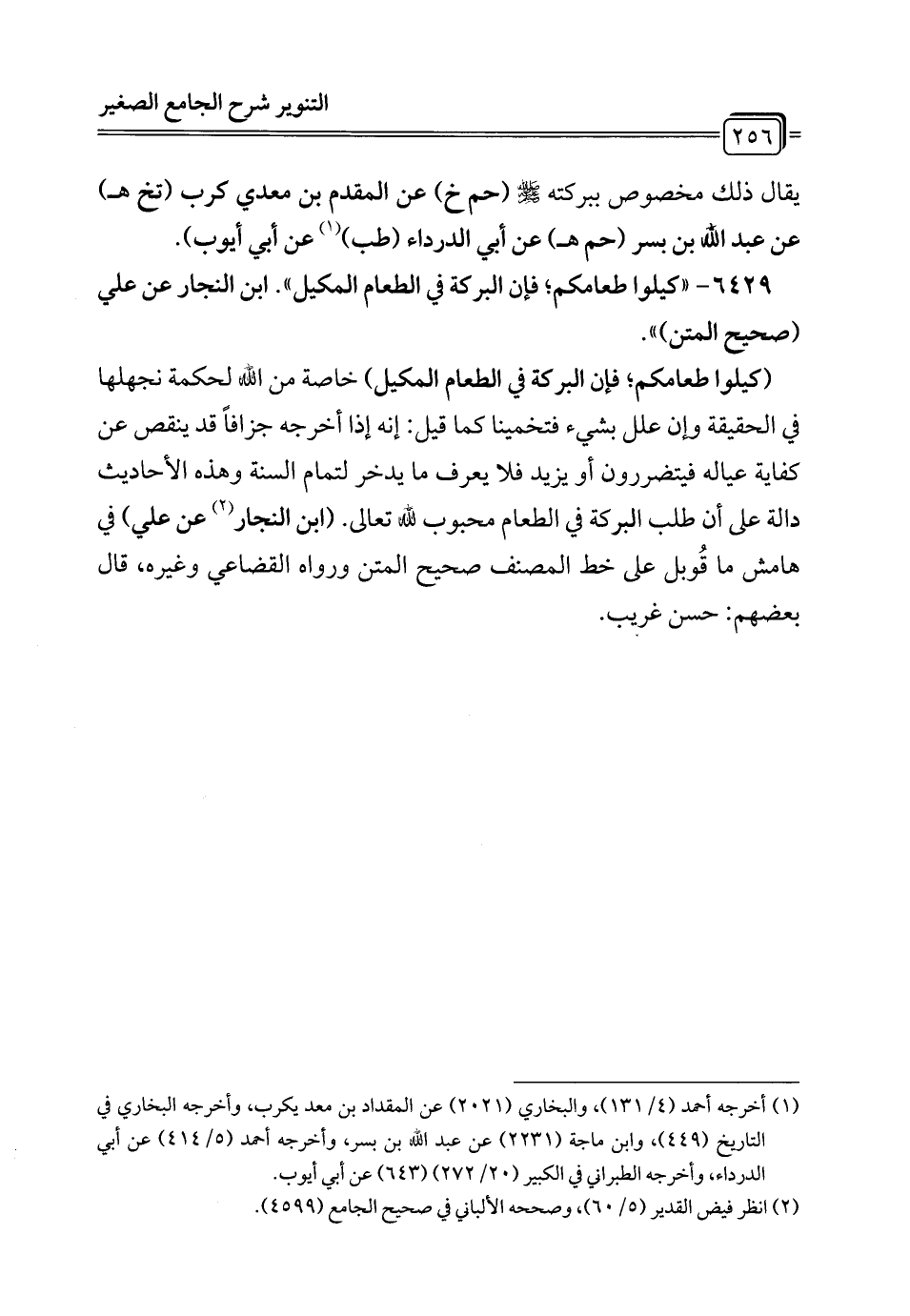 يقال ذلك مخصوص ببركته - صلى الله عليه وسلم - (حم خ) عن المقدم بن معد يكرب (تخ هـ) عن عبد الله بن بسر (حم هـ) عن أبي الدرداء (طب) (¬1) عن أبي أيوب).