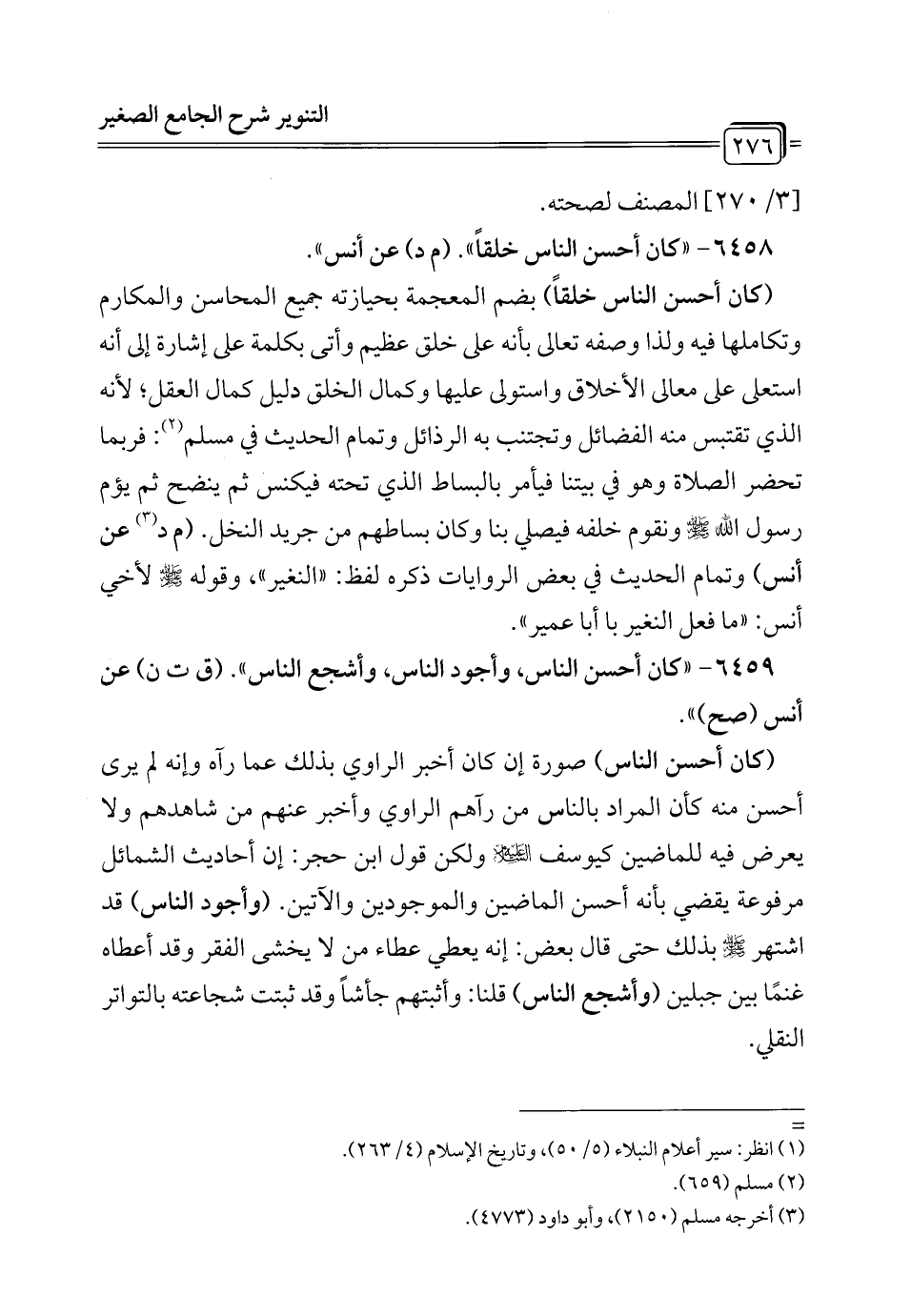 6458 - "كان أحسن الناس خلقاً". (م د) عن أنس".