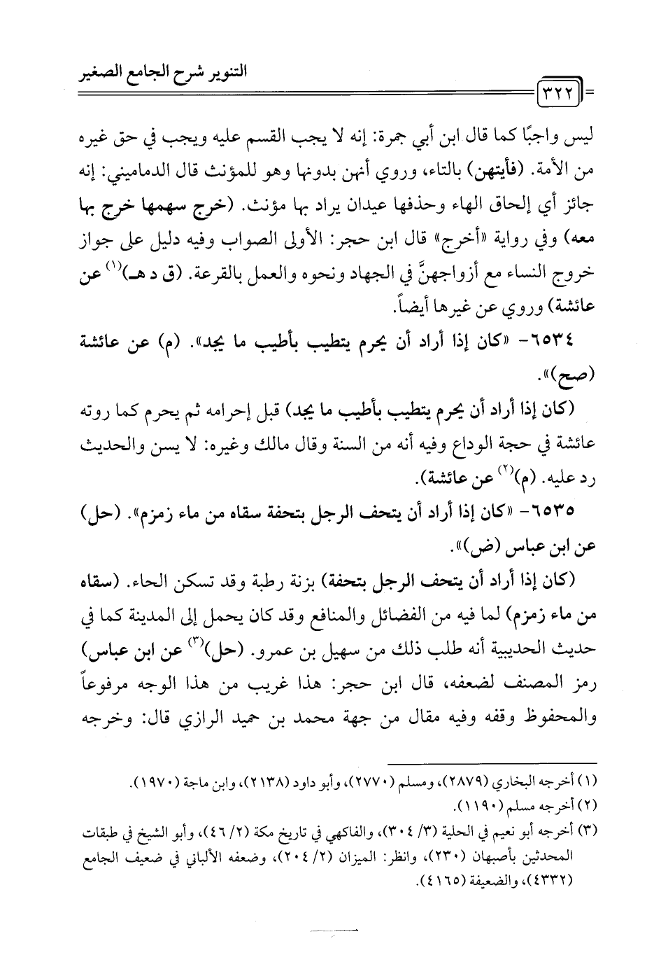 6534 - "كان إذا أراد أن يحرم يتطيب بأطيب ما يجد". (م) عن عائشة (صح) ".