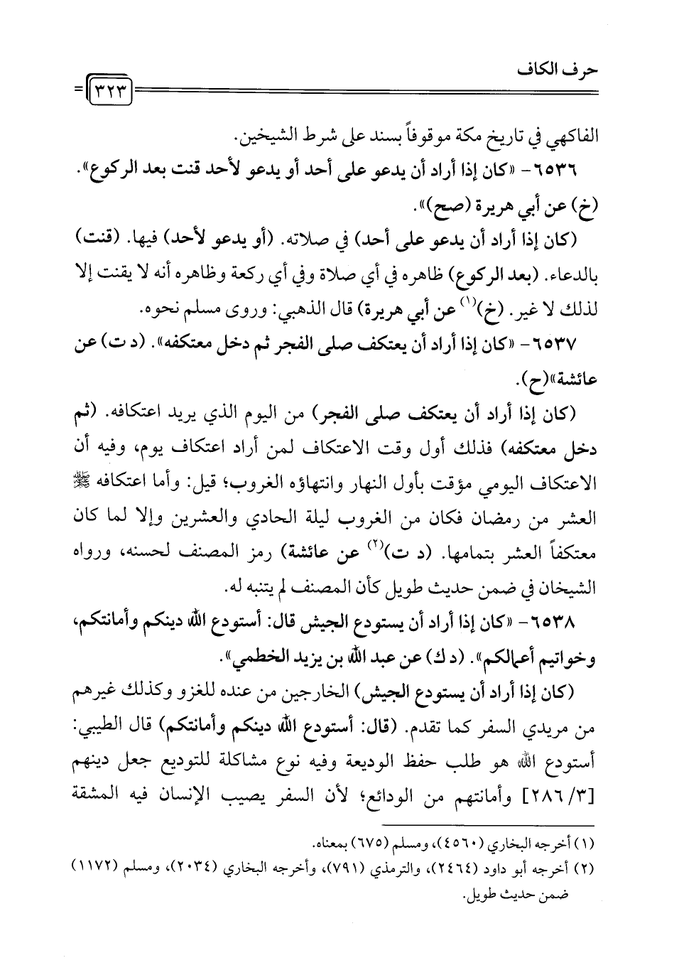 6536 - "كان إذا أراد أن يدعو على أحد أو يدعو لأحد قنت بعد الركوع". (خ) عن أبي هريرة (صح) ".