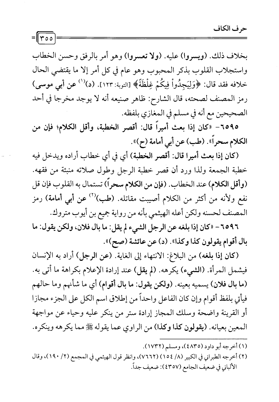 (¬3) عزاه في الكنز (3/ 185) للحاكم في الكنى انظر فيض القدير (2/ 288)، وضعفه الألباني في ضعيف الجامع (4427).
