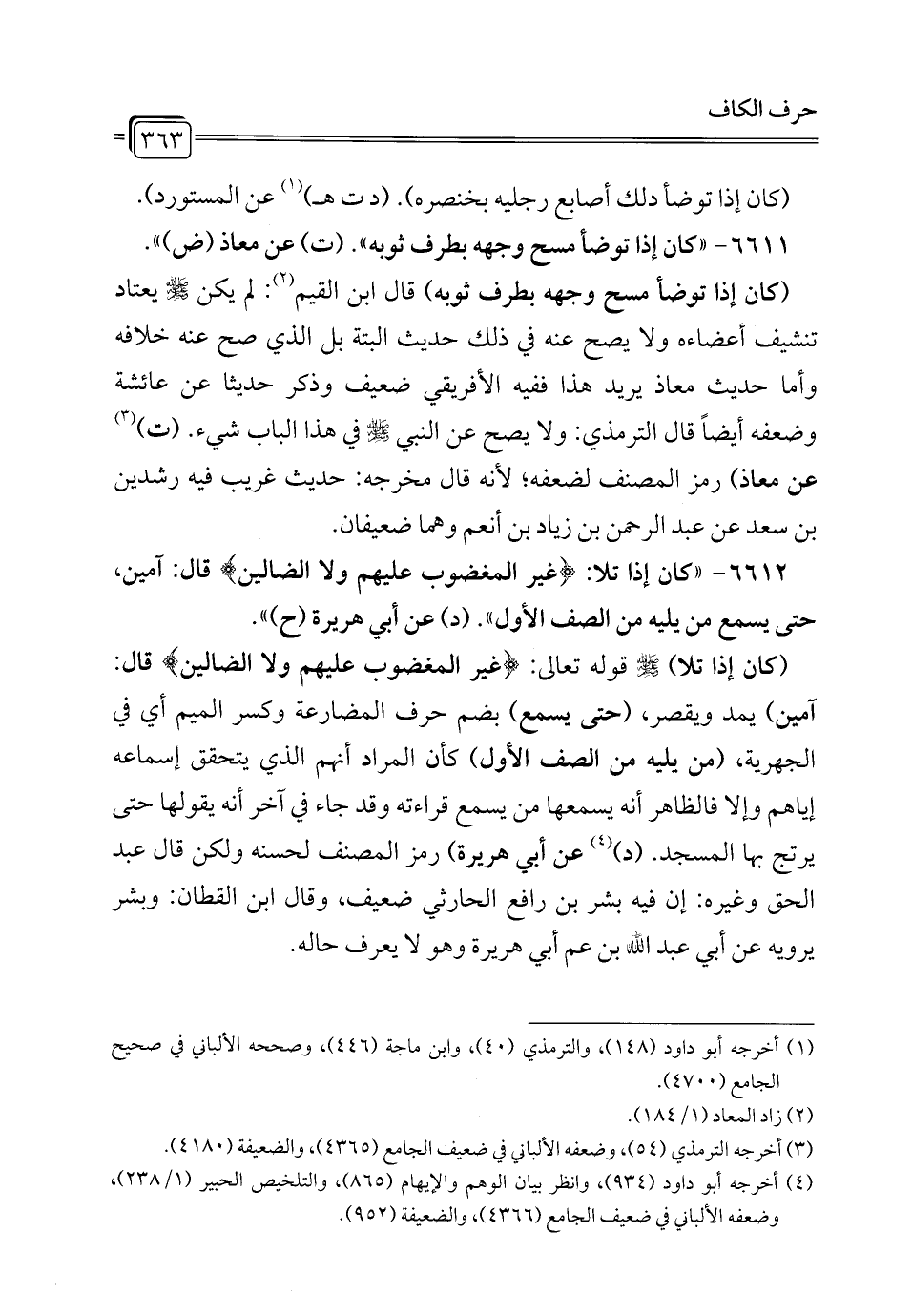 (¬4) أخرجه أبو داود (934)، وانظر بيان الوهم والإيهام (865)، والتلخيص الحبير (1/ 238)، وضعفه الألباني في ضعيف الجامع (4366)، والضعيفة (952).
