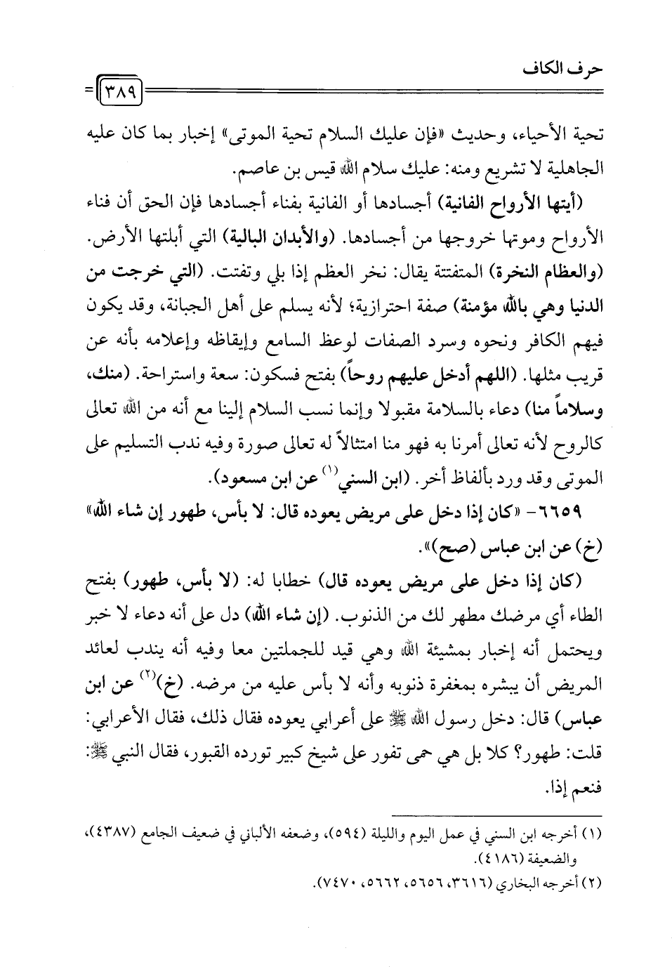 6659 - "كان إذا دخل على مريض يعوده قال: لا بأس، طهور إن شاء الله" (خ) عن ابن عباس (صح) ".