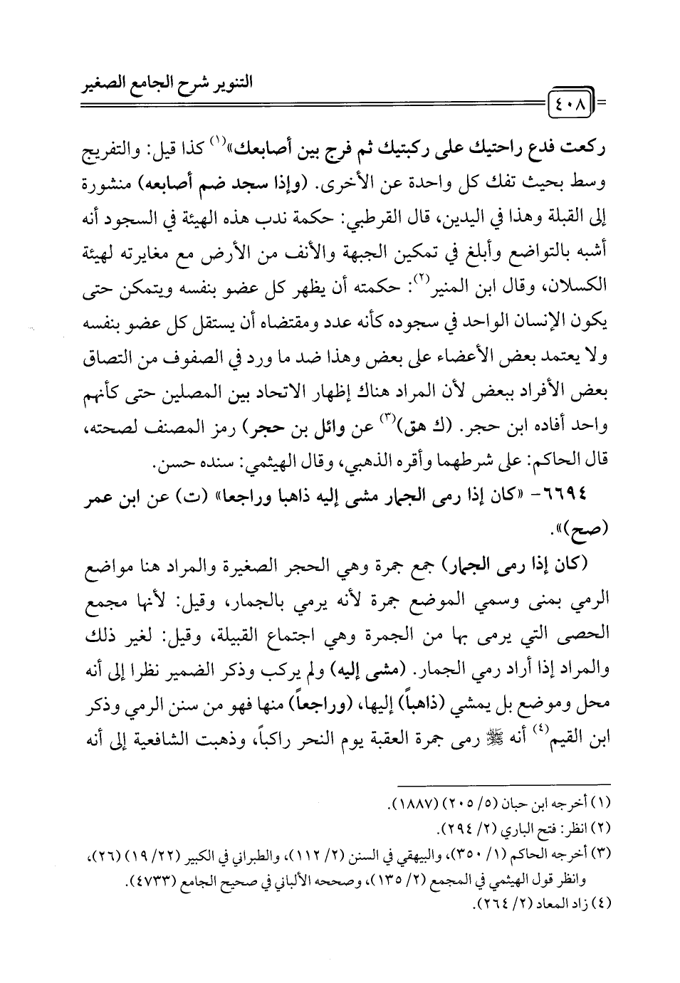 6694 - "كان إذا رمى الجمار مشى إليه ذاهبا وراجعا" (ت) عن ابن عمر (صح) ".