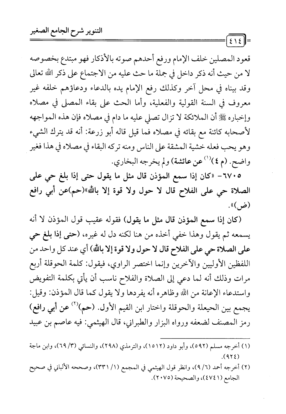 6705 - "كان إذا سمع المؤذن قال مثل ما يقول حتى إذا بلغ حي على الصلاة حي على الفلاح قال لا حول ولا قوة إلا بالله" (حم) عن أبي رافع (ض) ".