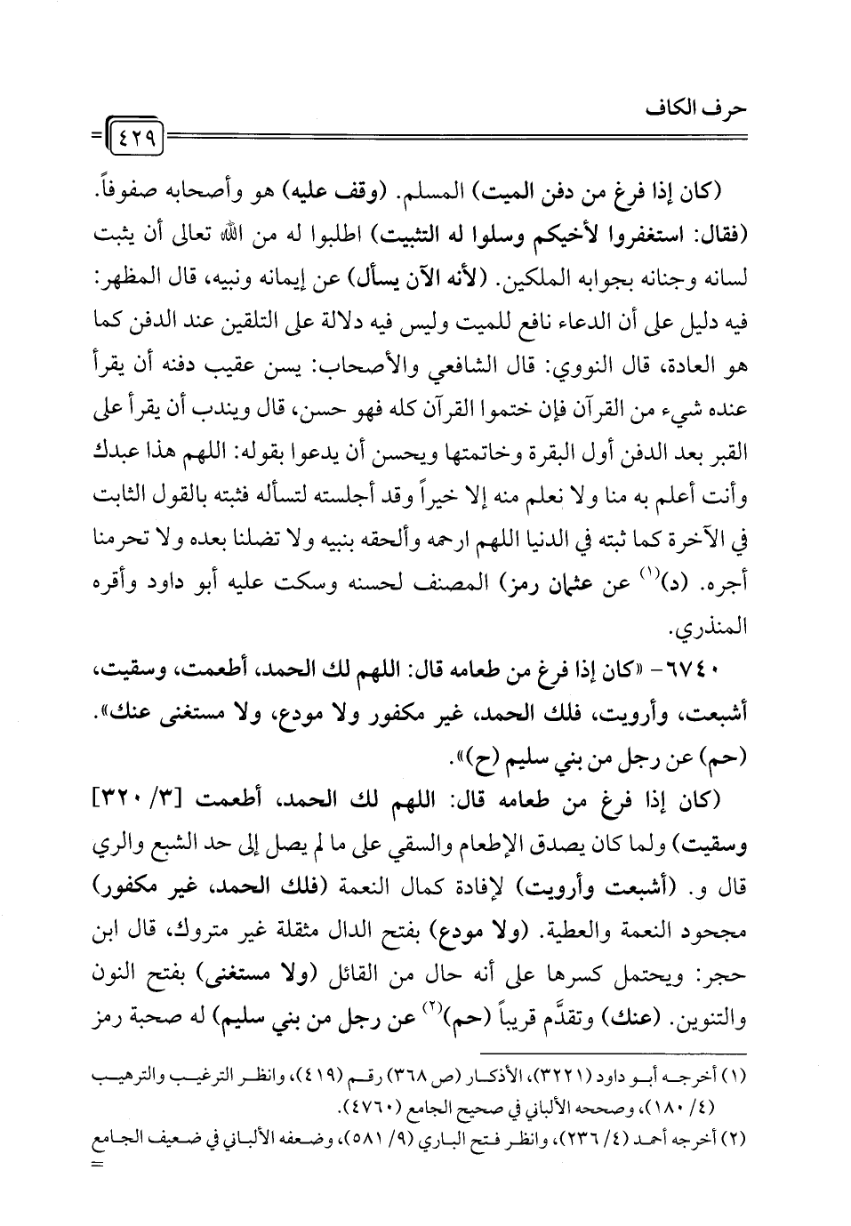 6740 - "كان إذا فرغ من طعامه قال: اللهم لك الحمد، أطعمت، وسقيت، أشبعت، وأرويت، ذلك الحمد، غير مكفور ولا مودع، ولا مستغنى عنك". (حم) عن رجل من بني سليم (ح) ".