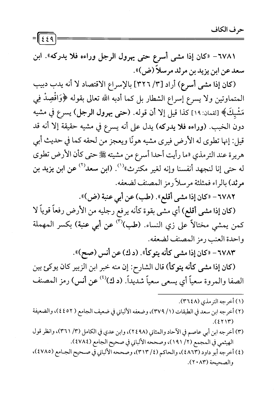 6783 - "كان إذا مشى كأنه يتوكأ". (د ك) عن أنس (صح) ".