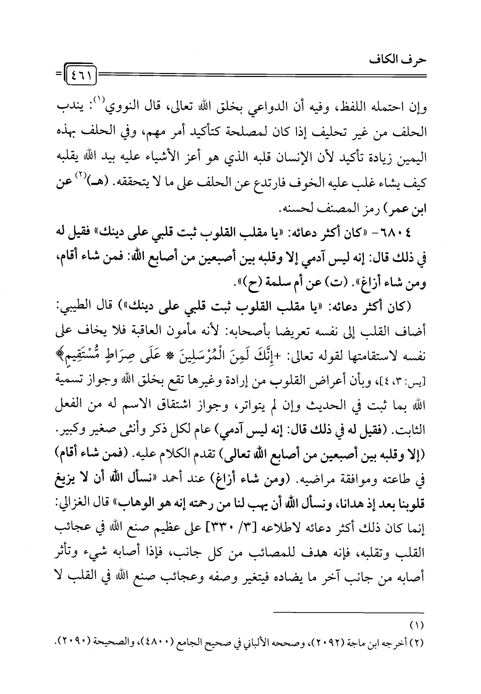 6804 - "كان أكثر دعائه: "يا مقلب القلوب ثبت قلبي على دينك" فقيل له في ذلك قال: إنه ليس آدمي إلا وقلبه بين أصبعين من أصابع الله: فمن شاء أقام، ومن شاء أزاغ". (ت) عن أم سلمة (ح) ".