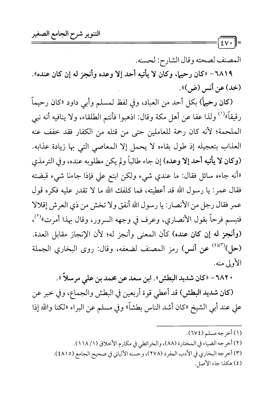 6819 - "كان رحيما، وكان لا يأتيه أحد إلا وعده وأنجز له إن كان عنده". (خد) عن أنس (ض).