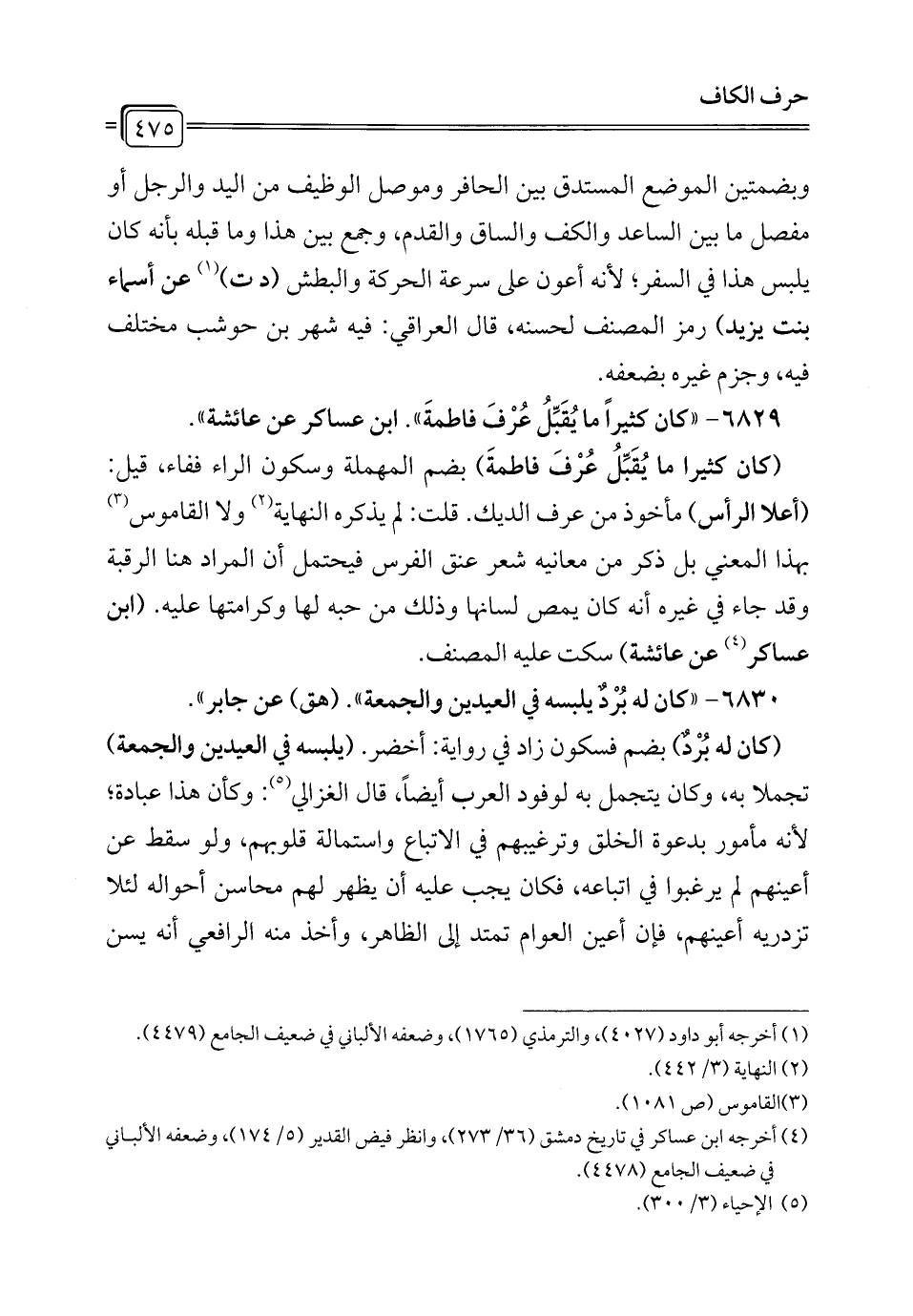 6829 - "كان كثيراً ما يُقَبِّلُ عُرْفَ فاطمةَ". ابن عساكر عن عائشة".