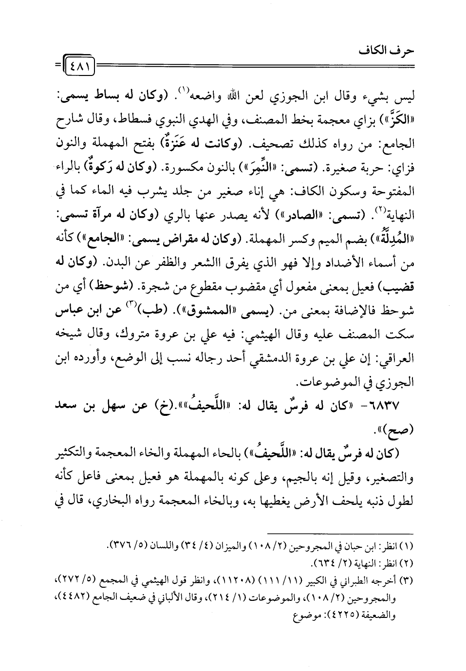 6837 - "كان له فرسٌ يقال له: "اللَّحيفُ"". (خ) عن سهل بن سعد (صح) ".