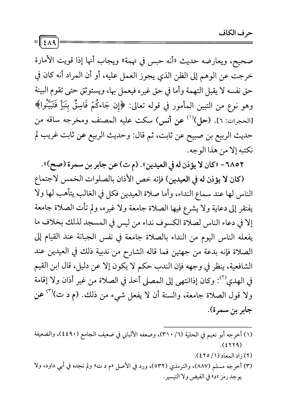 6852 - "كان لا يؤذن له في العيدين". (م ت) عن جابر بن سمرة (صح) ".