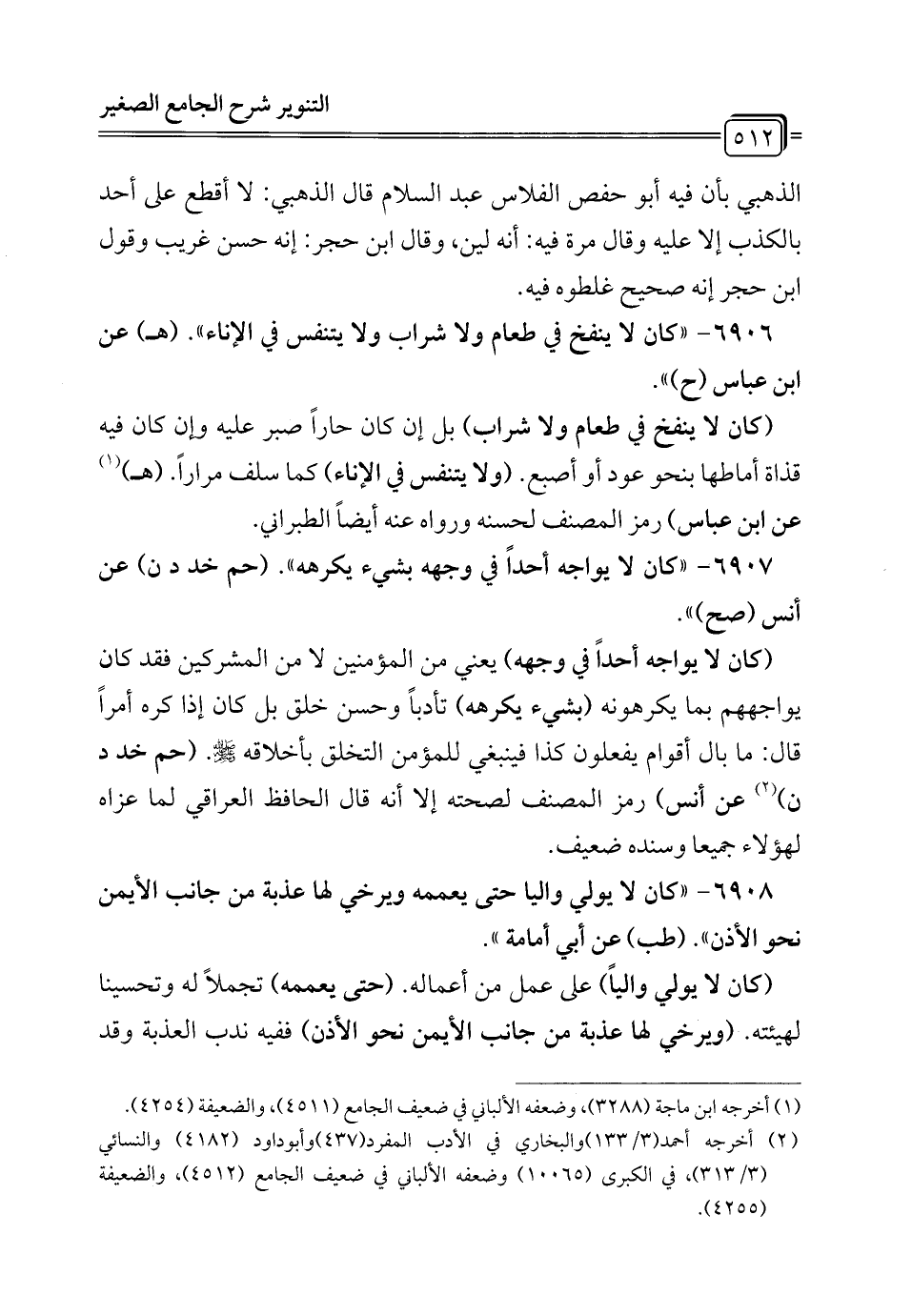 (¬2) أخرجه أحمد (3/ 133) والبخاري في الأدب المفرد (437) وأبو داود (4182) والنسائي (3/ 313)، في الكبرى (10065) وضعفه الألباني في ضعيف الجامع (4512)، والضعيفة (4255).