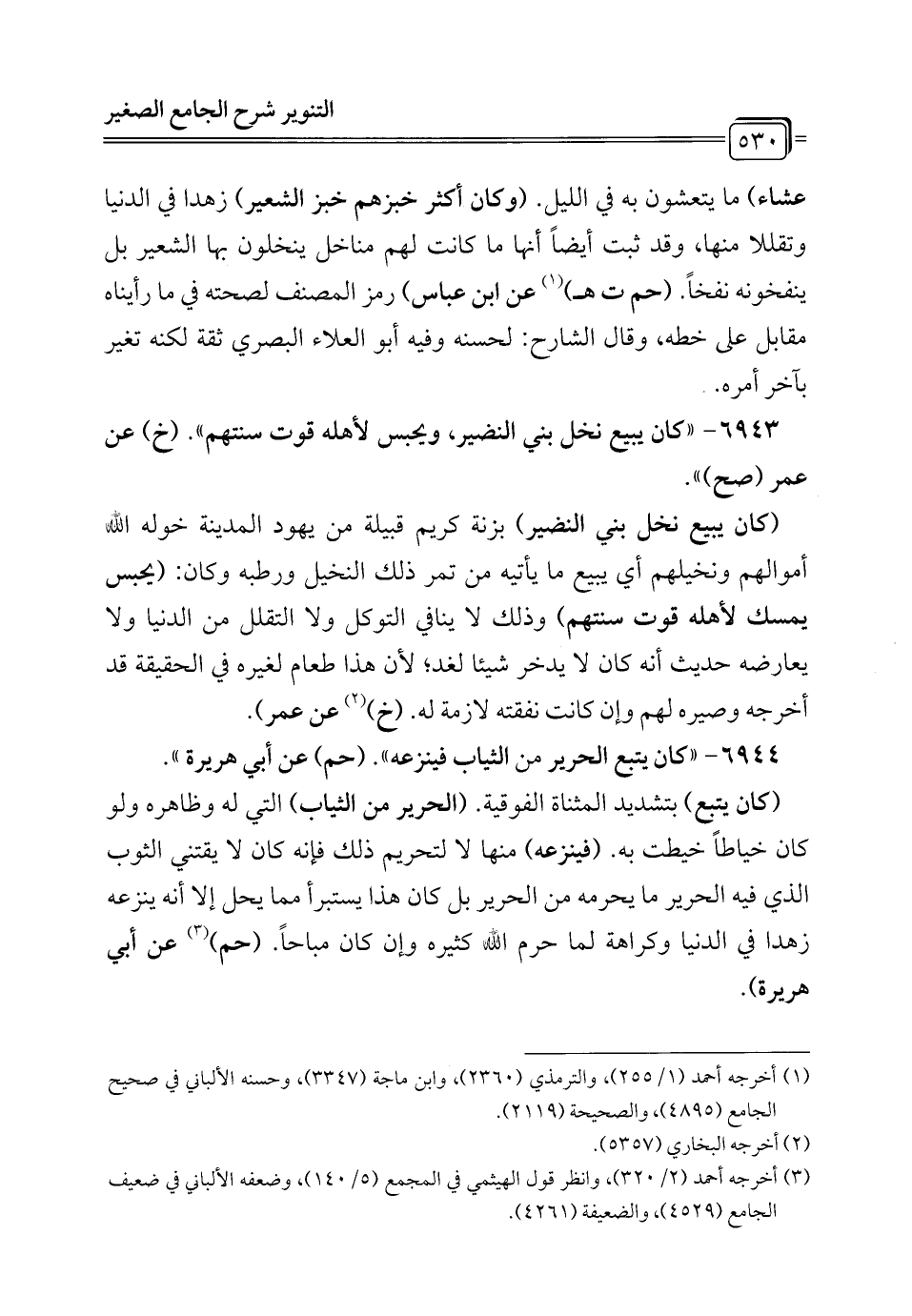 6943 - "كان يبيع نخل بني النضير، ويحبس لأهله قوت سنتهم". (خ) عن عمر (صح) ".