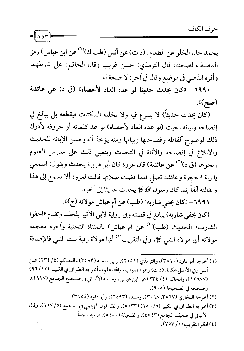 6990 - "كان يحدث حديثا لو عده العاد لأحصاه" (ق د) عن عائشة (صح) ".