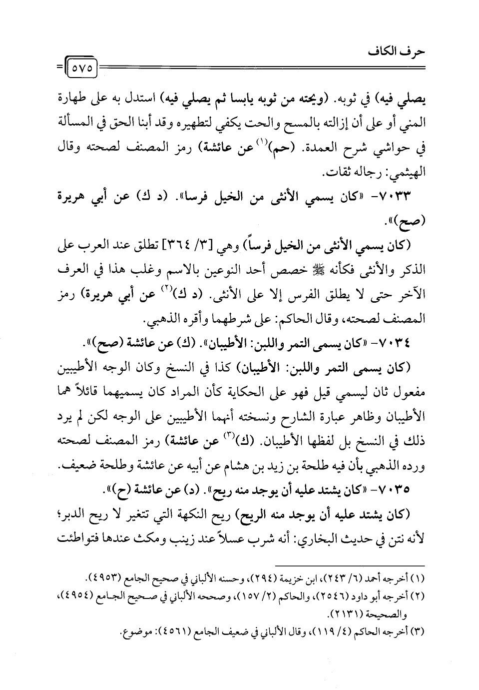 7035 - "كان يشتد عليه أن يوجد منه ريح". (د) عن عائشة (ح) ".