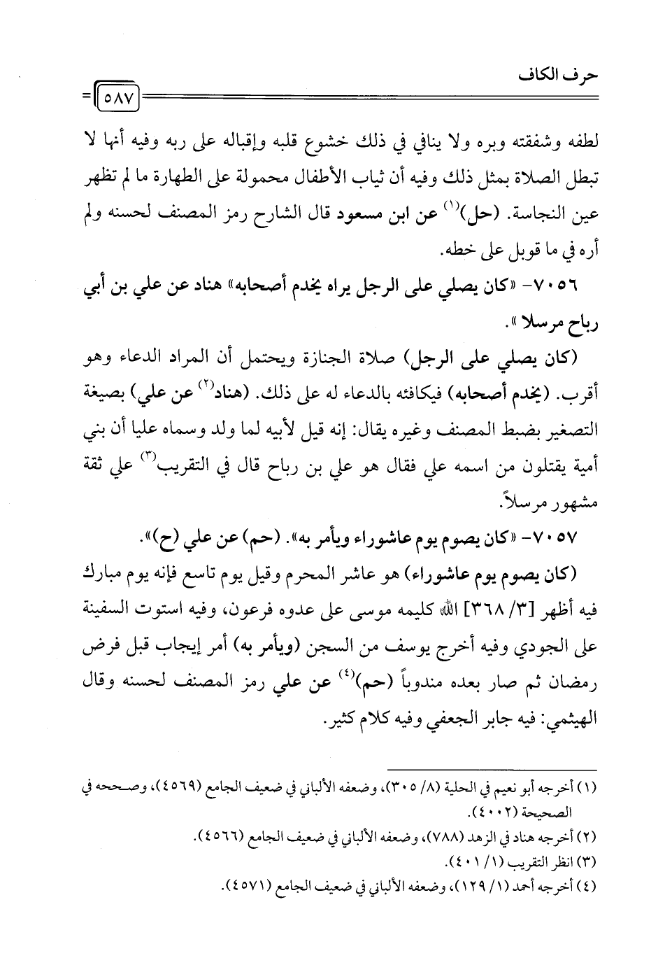 7056 - "كان يصلي على الرجل يراه يخدم أصحابه" هناد عن علي بن أبي رباح مرسلا".