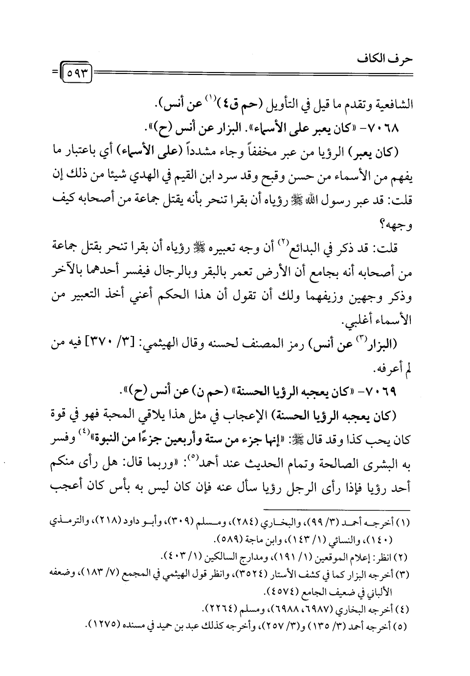 7069 - "كان يعجبه الرؤيا الحسنة" (حم ن) عن أنس (ح) ".