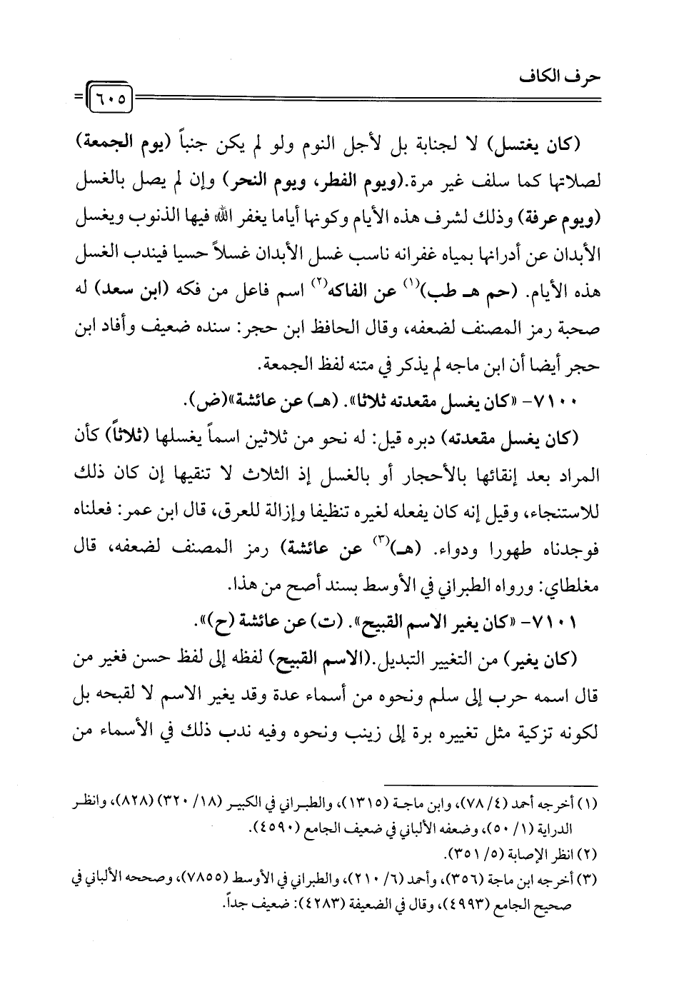 7100 - "كان يغسل مقعدته ثلاثا". (هـ) عن عائشة" (ض).