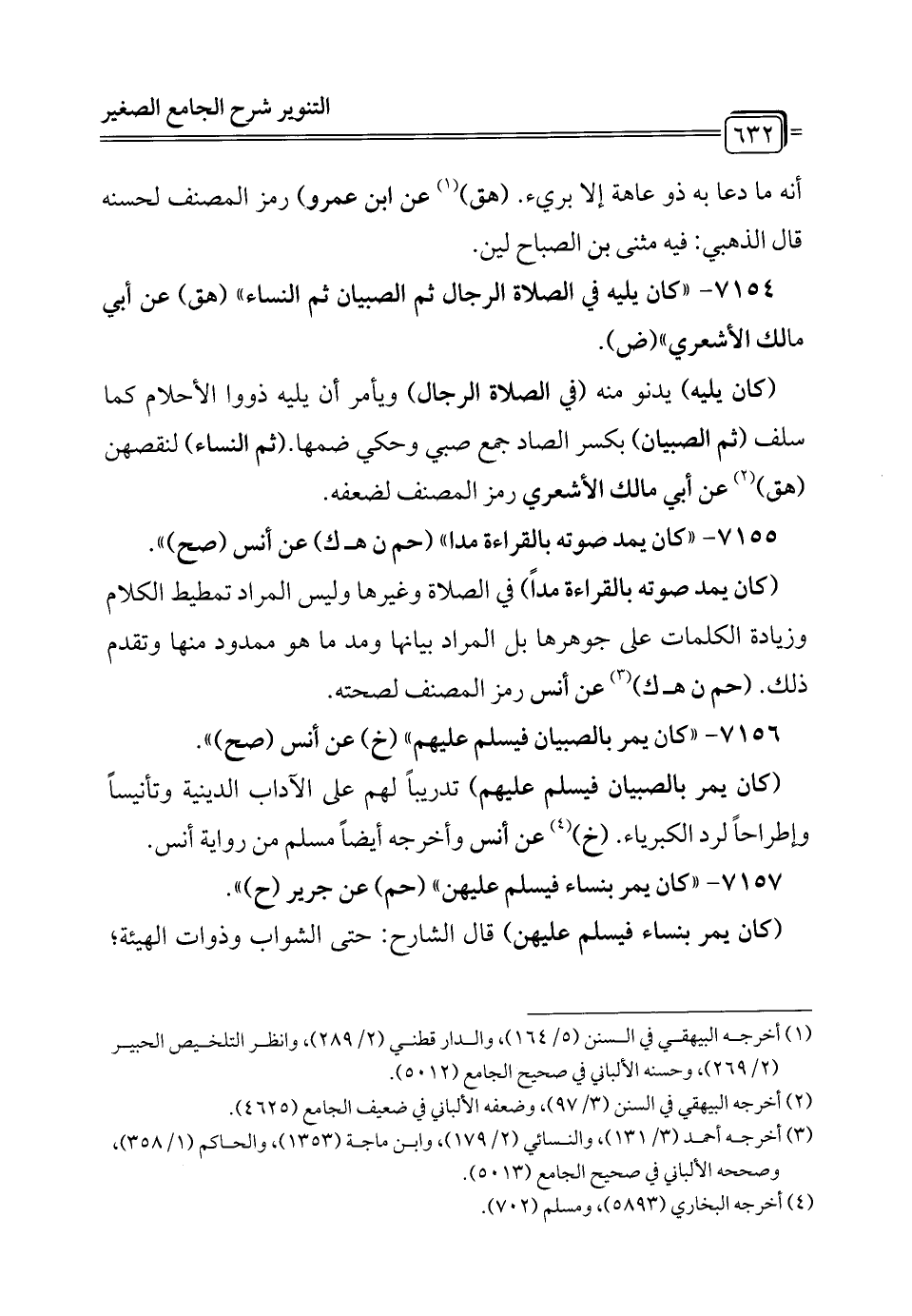 7156 - "كان يمر بالصبيان فيسلم عليهم" (خ) عن أنس (صح) ".