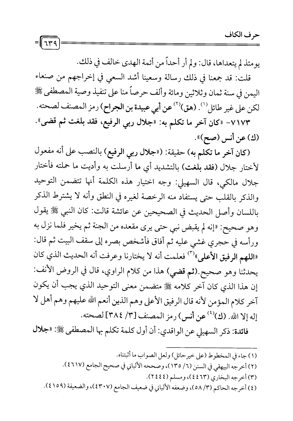 7173 - "كان آخر ما تكلم به: "جلال ربي الرفيع، فقد بلغت ثم قضى". (ك) عن أنس (صح) ".