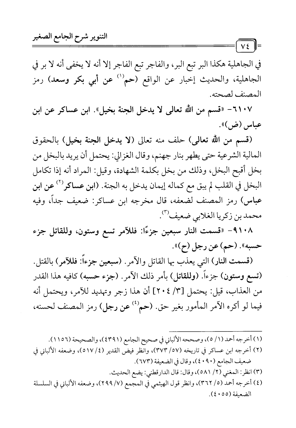 6107 - "قسم من الله تعالى لا يدخل الجنة بخيل". ابن عساكر عن ابن عباس (ض) ".