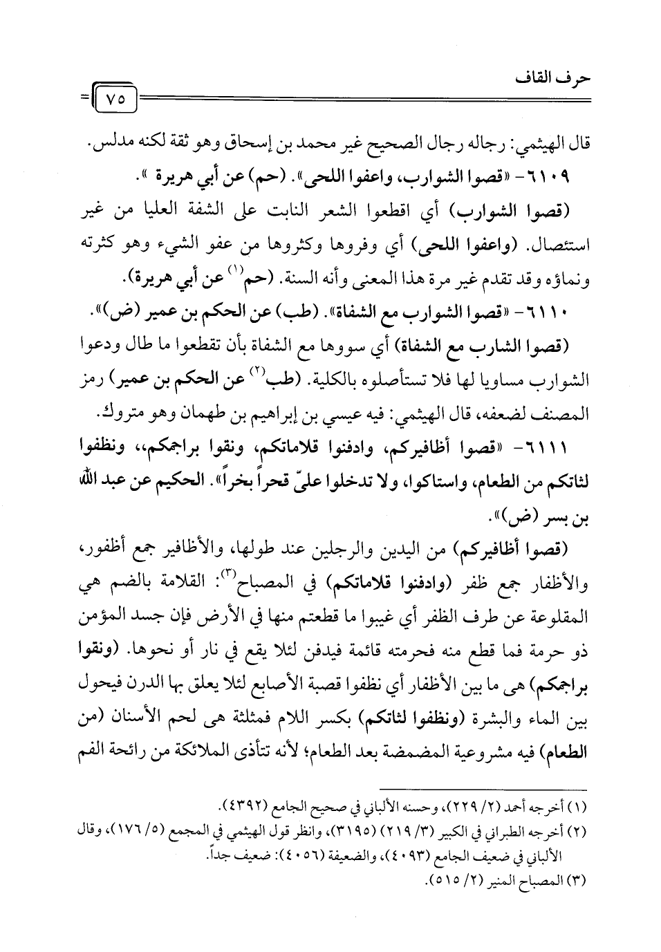 6110 - "قصوا الشوارب مع الشفاة". (طب) عن الحكم بن عمير (ض) ".