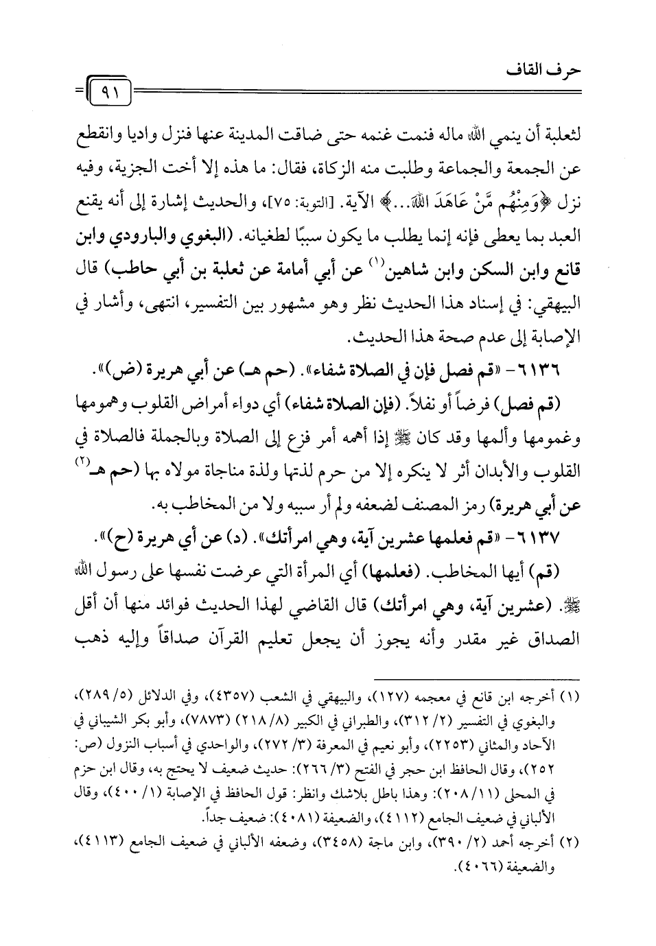 6136 - "قم فصل فإن في الصلاة شفاء". (حم هـ) عن أبي هريرة (ض) ".