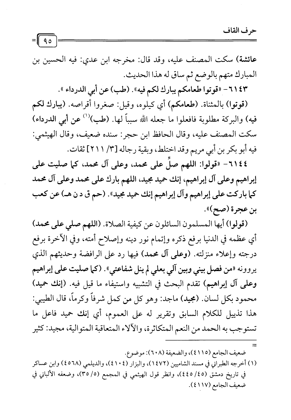 6143 - "قوتوا طعامكم يبارك لكم فيه". (طب) عن أبي الدرداء".
