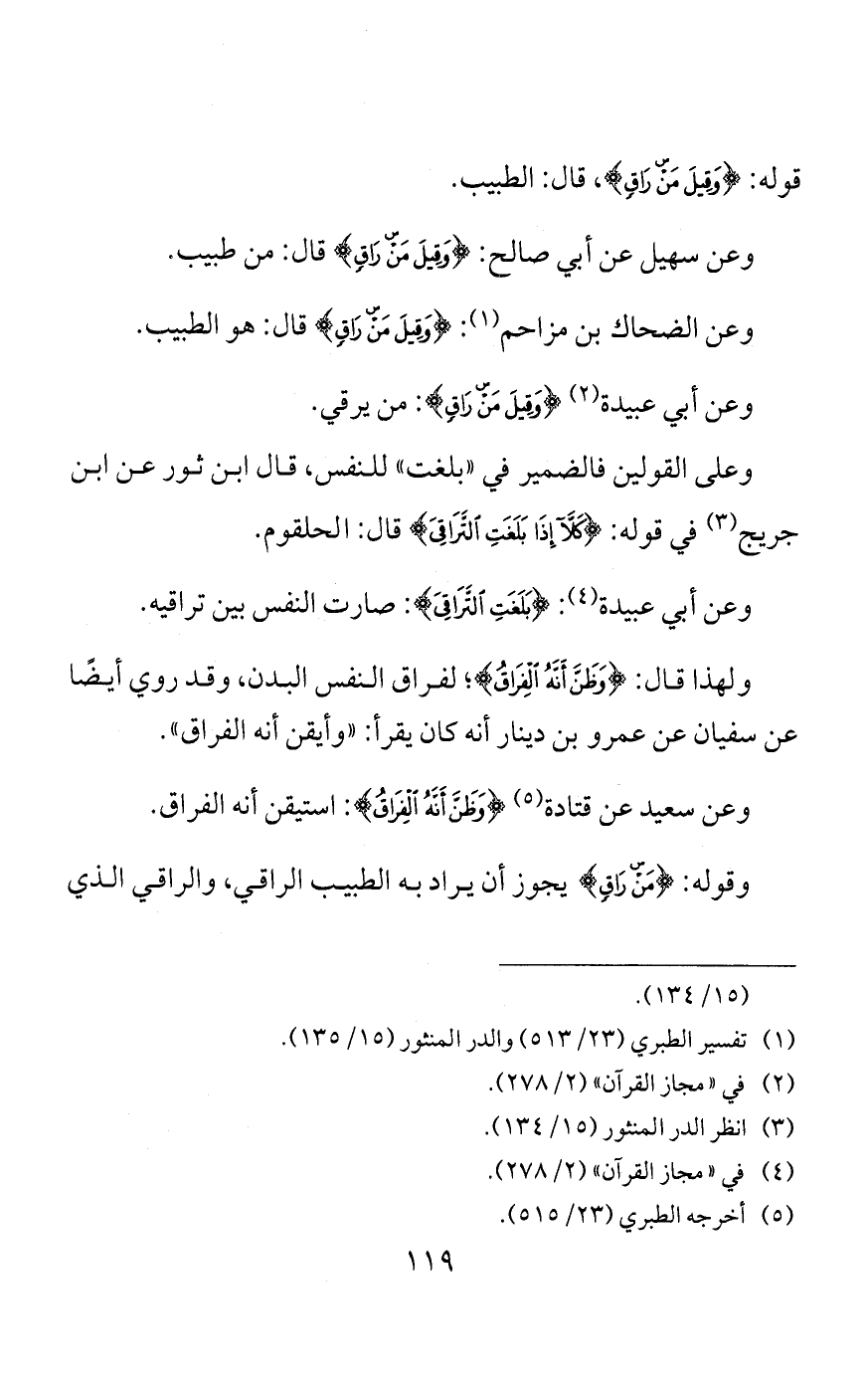 ثم إنه لما ذكر القيامة قال: {كَلَّا إِذَا بَلَغَتِ التَّرَاقِيَ (26) وَقِيلَ مَنْ رَاقٍ
