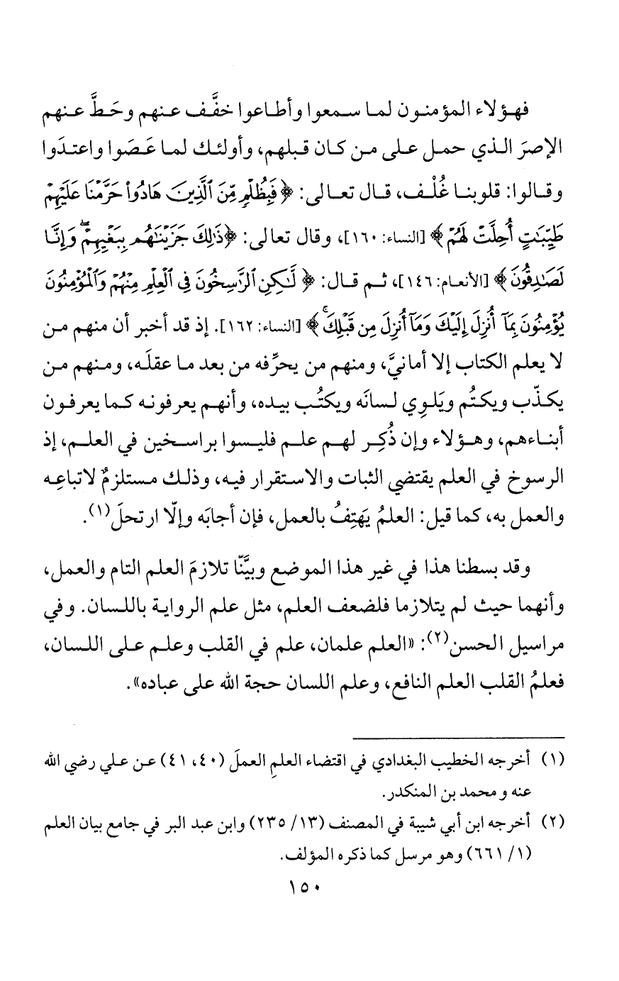 فهذا بعض ما يُبَيِّنُ أن العاقل عليه أن يجعل كل رئاسة وإمامة، سواء كانت علمية كالفقه والكلام وغيرهما، أو دينية كالفقر والتصوف والتعبد وغيرها، أو حربية كالملك والإمرة، أو مالية كالوزارة والخراج، إلى غير ذلك، يجعلها جميعَها تابعةً للكتاب والسنة، ولا يتقدم بين يدي الله ورسوله في شيء من المراتب، فذلك خيرٌ وأحسن تأويلًا.