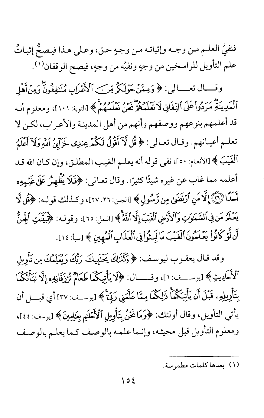 بَعِيدٍ (53) وَلِيَعْلَمَ الَّذِينَ أُوتُوا الْعِلْمَ أَنَّهُ الْحَقُّ مِنْ رَبِّكَ فَيُؤْمِنُوا بِهِ فَتُخْبِتَ لَهُ قُلُوبُهُمْ، وَإِنَّ اللَّهَ لَهَادِ الَّذِينَ آمَنُوا إِلَى صِرَاطٍ مُسْتَقِيمٍ} [الحج:52 - 54]، فإنه ذكر الذين أوتوا العلم هنا فقط، كما قال هناك: {وَالرَّاسِخُونَ فِي الْعِلْمِ يَقُولُونَ آمَنَّا بِهِ كُلٌّ مِنْ عِنْدِ رَبِّنَا}.