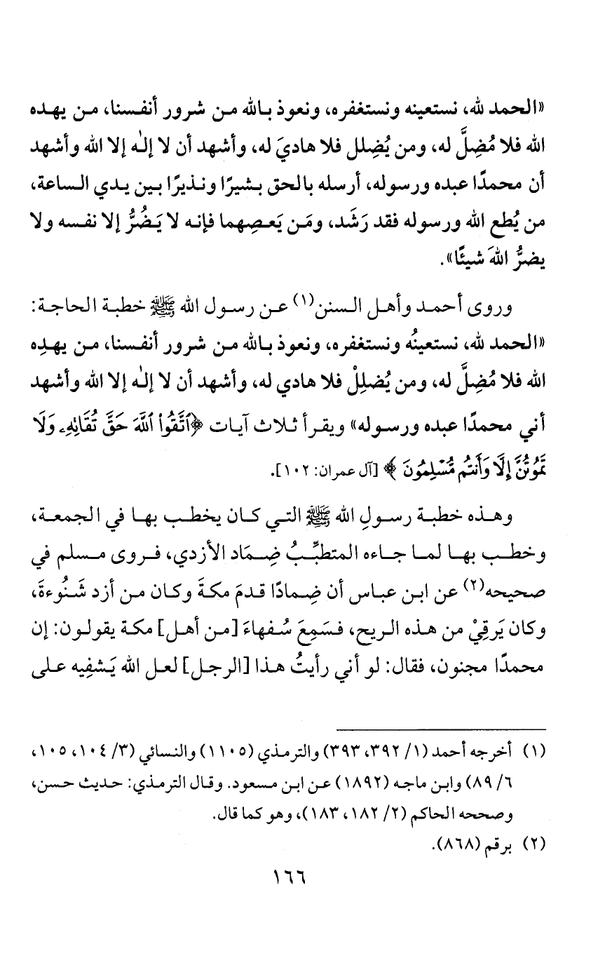 ولهذا كانت الشهادتان ركنًا في شعار الإسلام الذي هو الأذان والإقامة، وفي تشهد الصلاة التي هي عماد الدين، وفي الخطب جميعها. قال صلى الله عليه وسلم في الحديث الذي رواه أبو داود عن أبي هريرة