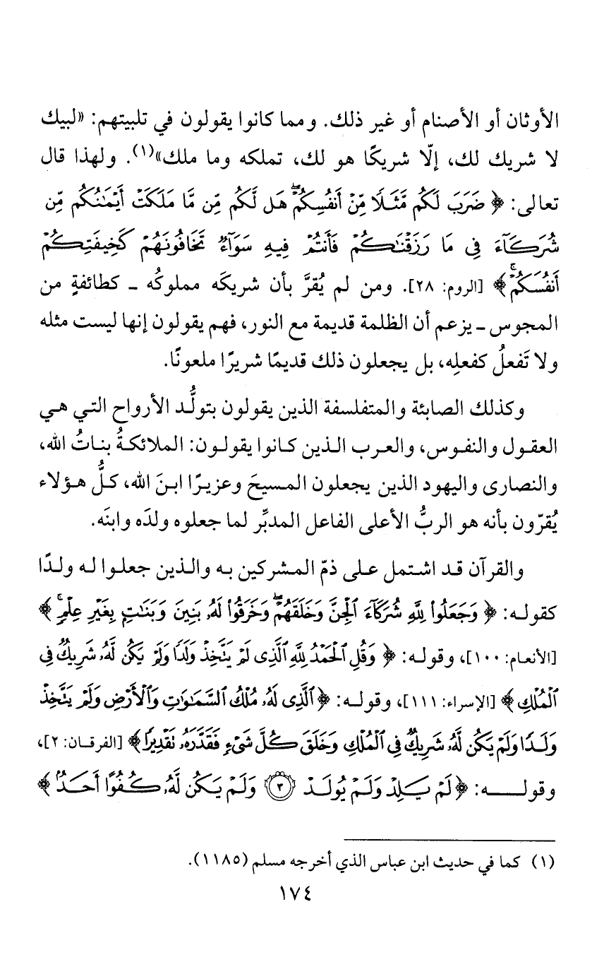 والشهادة وإن كانت هي أول الواجبات فهي أفضل العبادات، وأرفعُ العلوم والمعارف، وأجلّ القُرَبِ والطاعات، وهي قُوْتُ المؤمن في كل وقتٍ وحال، وهي للإيمان كالنية للعبادات، وإن اكتُفِي باستصحاب حكمها فاستصحابُ ذكرها هو الأصل، ويجب أن يُستصحبَ ذكرُه في المواطن التي يستزلُّ الشيطانُ الناسَ عن حقيقتها، إما بتألُّهِ غيرِ الله أو إخراج الرسولِ عن حقيقة الرسالة، ومزاحمة غيره له، من ملكٍ أو أمير أو عالم أو شيخ أو إمام أو صاحب، فإن هذا يقع فيه خلائق لا يُحصَون ممن مضى ومن غبَر، وهو يخرج عن حقيقة الإيمان وإن كان قد لا يَخرج عن أصلِه.