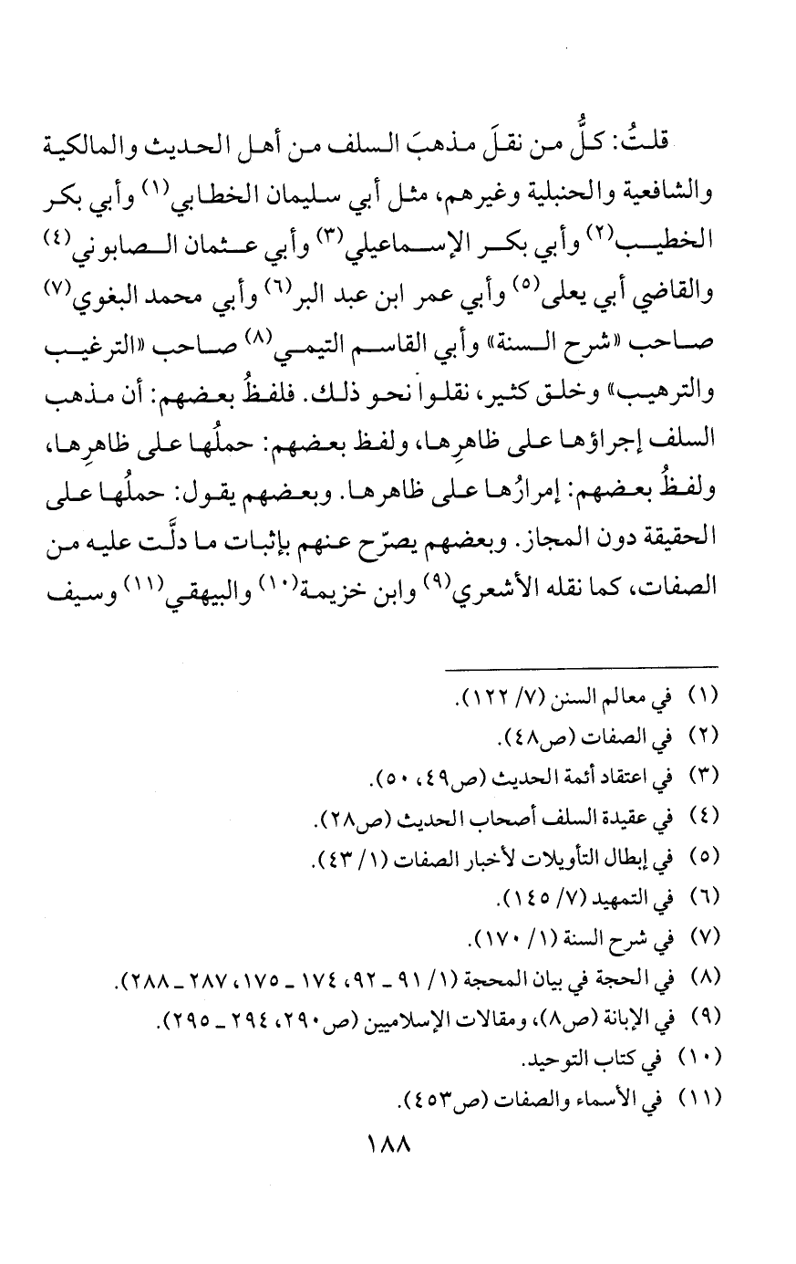 فأنكر بعض الجماعة لفظ الحقيقة، فقلتُ: قد حكى أبو عمر ابن عبد البر في «التمهيد» إجماع أهل السنة على أن هذه الآيات والأحاديث تُجرى على الحقيقة لا على المجاز. وذكرتُ أيضًا ما حكاه