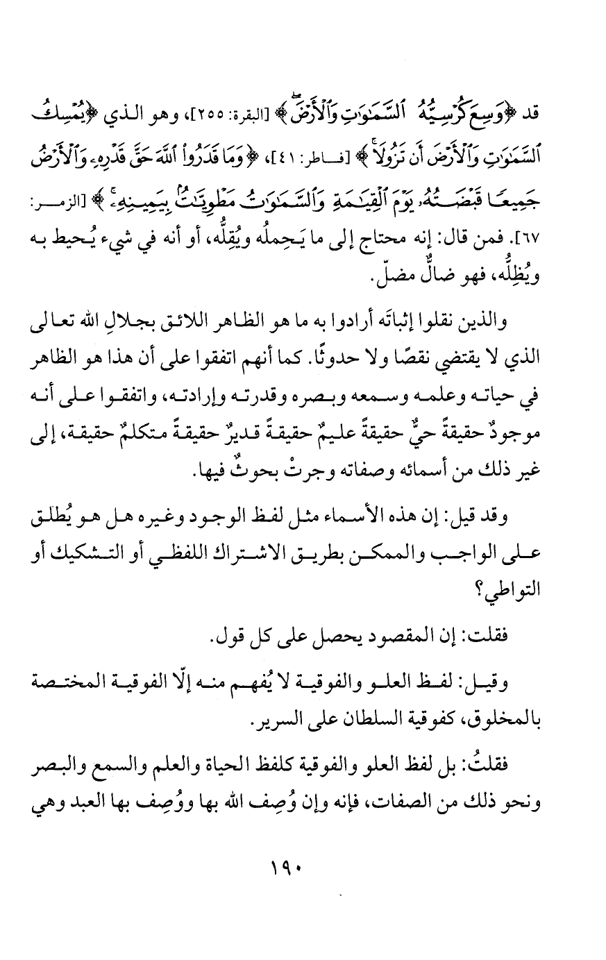 قلتُ: كلُّ من نقلَ مذهبَ السلف من أهل الحديث والمالكية والشافعية والحنبلية وغيرهم، مثل أبي سليمان الخطابي وأبي بكر الخطيب وأبي بكر الإسماعيلي وأبي عثمان الصابوني والقاضي أبي يعلى وأبي عمر ابن عبد البر وأبي محمد البغوي صاحب «شرح السنة» وأبي القاسم التيمي صاحب «الترغيب والترهيب» وخلق كثير، نقلوا نحو ذلك. فلفظُ بعضهم: أن مذهب السلف إجراؤها على ظاهرِها، ولفظ بعضهم: حملُها على ظاهرِها، ولفظُ بعضهم: إمرارُها على ظاهرها. وبعضهم يقول: حملُها على الحقيقة دون المجاز. وبعضهم يصرِّح عنهم بإثبات ما دلَّت عليه من الصفات، كما نقله الأشعري وابن خزيمة والبيهقي وسيف