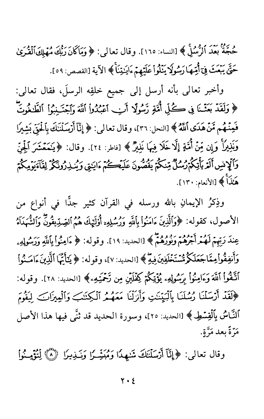 وقال تعالى: {يَا بَنِي آدَمَ إِمَّا يَأْتِيَنَّكُمْ رُسُلٌ مِنْكُمْ يَقُصُّونَ عَلَيْكُمْ آيَاتِي فَمَنِ اتَّقَى وَأَصْلَحَ فَلَا خَوْفٌ عَلَيْهِمْ وَلَا هُمْ يَحْزَنُونَ (35) وَالَّذِينَ كَذَّبُوا بِآيَاتِنَا وَاسْتَكْبَرُوا عَنْهَا أُولَئِكَ أَصْحَابُ النَّارِ هُمْ فِيهَا خَالِدُونَ} [الأعراف:35 - 36].