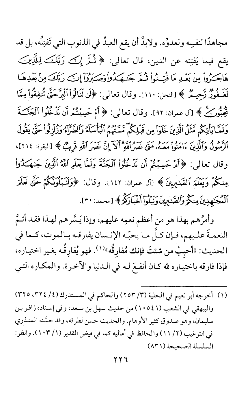 وهؤلاء التابعون وصفهم بالإيمان والهجرة والجهاد، لأن الناس يكثرون والأنصار يقلُّون، وما بقي بالنسبة إلى أولئك دارٌ يُؤْوُون إليها الرسولَ وأصحابَه. لكن هذا المعنى ثابت لكل من هُوجِرَ إليه من المؤمنين فآوَوا مَنْ هاجرَ إليهم ونصروه، كما أنه قد قال: «لا هجرةَ بعد الفتح، ولكن جهادٌ ونِيَّة»، أي من أرض مكة وأرضِ العرب، لأنها صارتْ دارَ إسلام. وقد قال: «لا تنقطع الهجرةُ ما قُوتِلَ العدوُّ» أي من دار الكفر، وكذلك النصرة والجهاد لا يزال مأمورًا به إلى يوم