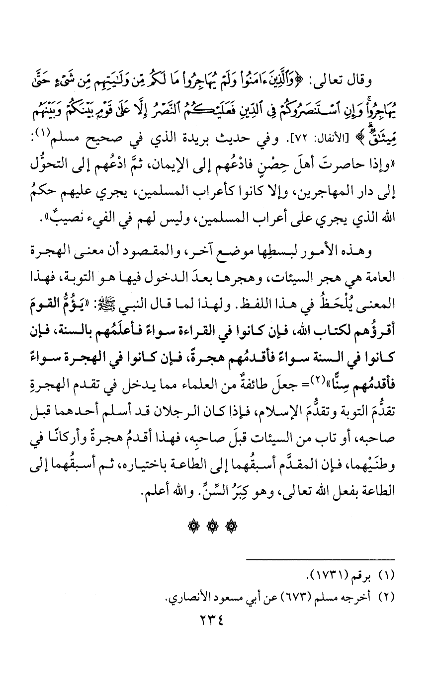 وأهل المصائب إنما يكونون صابرين إذا صبروا عند الصدمة الأولى، كما قال النبي صلى الله عليه وسلم: «إنما الصبر عند الصدمة الأولى». وإلا فمن لم يصبرْ صبرَ الكرام سَلَا سُلُوَّ البهائم. والعاقل يفعل في أول يومٍ ما يفعله الأحمق بعد ثلاثة أيام.