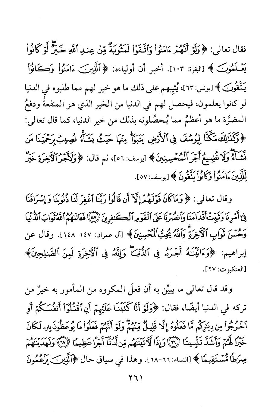 وقد قال تعالى في وصف النبي الأمي: {يَأْمُرُهُمْ بِالْمَعْرُوفِ وَيَنْهَاهُمْ عَنِ الْمُنْكَرِ وَيُحِلُّ لَهُمُ الطَّيِّبَاتِ وَيُحَرِّمُ عَلَيْهِمُ الْخَبَائِثَ وَيَضَعُ عَنْهُمْ إِصْرَهُمْ وَالْأَغْلَالَ الَّتِي كَانَتْ عَلَيْهِمْ} [الأعراف:157]. وقال تعالى لما ذكر الوضوء: {مَا يُرِيدُ اللَّهُ لِيَجْعَلَ عَلَيْكُمْ مِنْ حَرَجٍ وَلَكِنْ يُرِيدُ لِيُطَهِّرَكُمْ وَلِيُتِمَّ نِعْمَتَهُ عَلَيْكُمْ لَعَلَّكُمْ تَشْكُرُونَ} [المائدة:6]. فأخبر أنه لا يريد أن يجعل علينا من حرج فيما أمرنا به، وهذا نكرةٌ مؤكَّدةٌ بحرف «من»، فهي تَنفِي كلَّ حرج، وأخبر أنه إنما يريد تطهيرَنا وإتمامَ نعمتِه علينا.