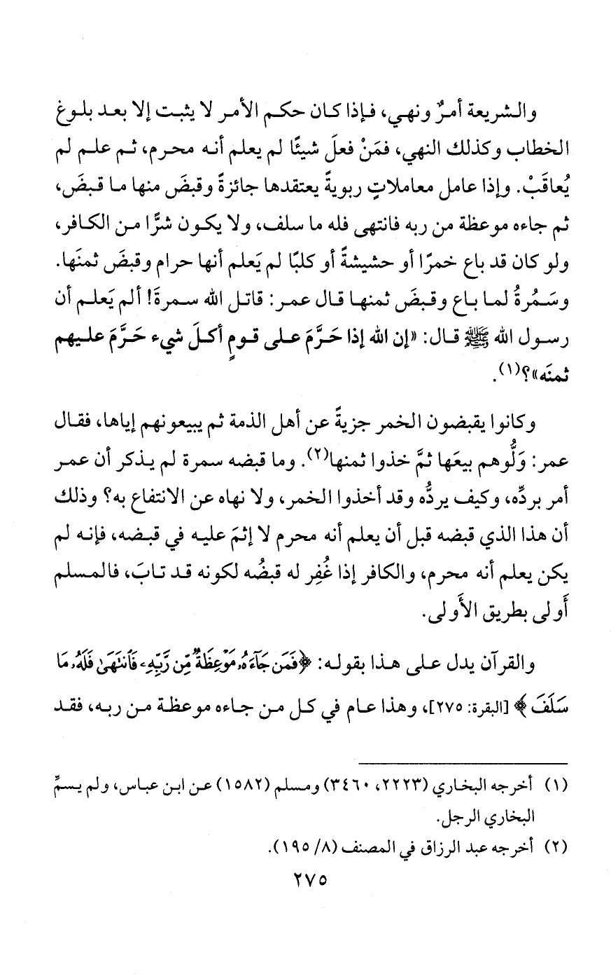 أما الأول والثاني ففيه قولان إذا تبيَّن له فيما بعدُ أن ذلك ربًا محرَّم، قيل: يردُّ ما قبضَ كالغاصب، وقيل: لا يردُّه، وهو الأصح؛ لأنه كان يعتقد أن ذلك حلالٌ، والكلام فيما إذا كان مختلفًا فيه مثل الحيل الربوية، فإذا كان الكافر إذا تاب يُغفر له ما استحلَّه ويُباح له ما قبضَه، فالمسلم المتأول إذا تاب يُغفَر له ما استحلَّه ويُباح له ما قبضَه؛ لأن المسلم إذا تاب أَوْلى أن يُغفَر له إن كان قد أخذ بأحد قولي العلماء في حِلِّ ذلك، فهو في تأويله أعذَرُ من الكافر في تأويله.