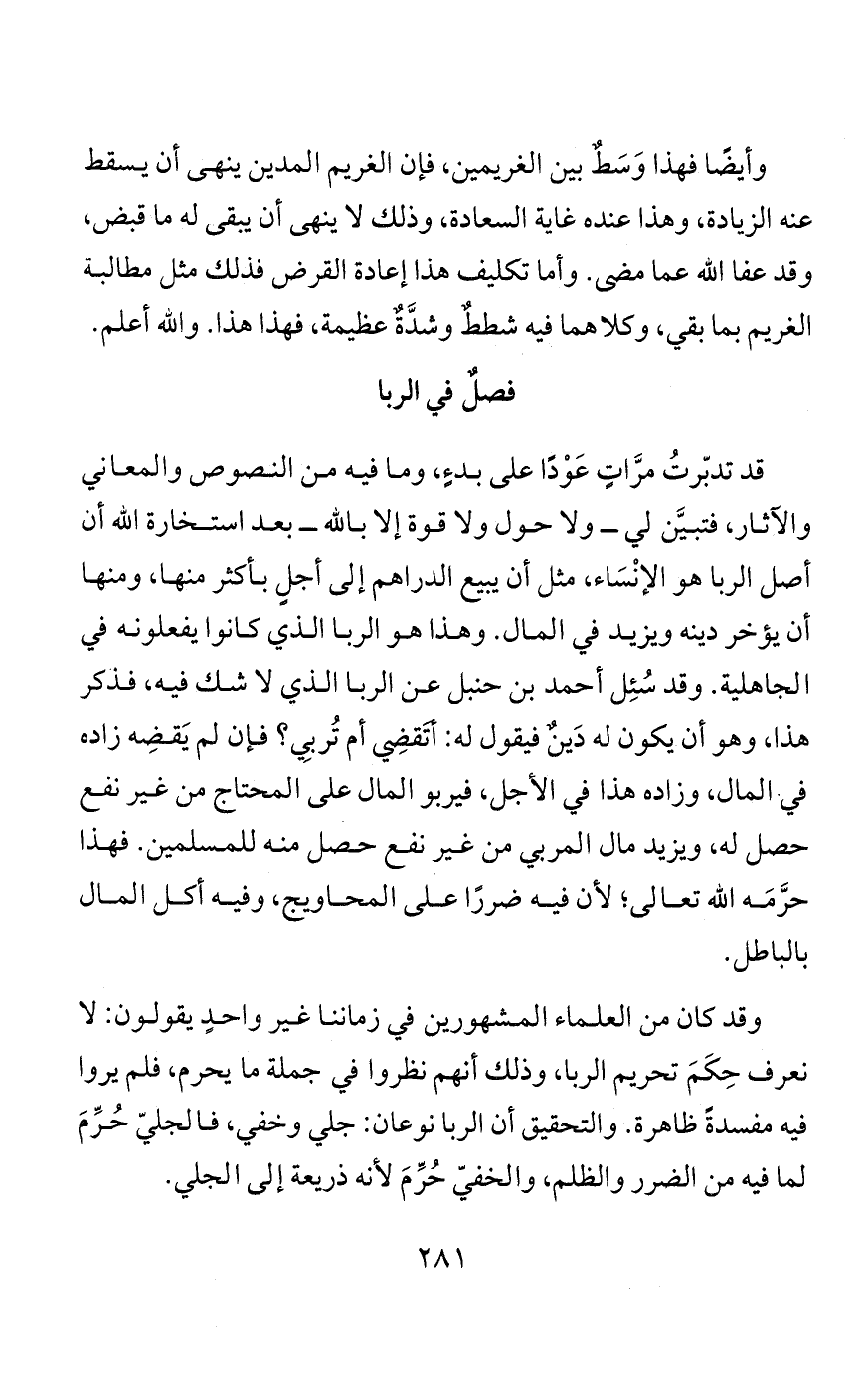وهذه المسألة تحتاج إلى نظر وتحقيق، وأما الذي لا ريبَ فيه عندي فهو ما قبضَه بتأويلٍ أو جهلٍ فهنا له ما سلف بلا ريب، كما دلَّ عليه الكتاب والسنة والاعتبار، وأما مع العلم بالتحريم فيحتاج إلى نظر، فإنه قد يُقال: طَرْدُ هذا أن من اكتسب مالًا من ثمنِ خمرٍ مع علمه بالتحريم فله ما سلف. وكذلك كلُّ مَنْ كسب مالًا محرمًا ثم تاب، إذا كان برضا الدافع، ويلزم مثل ذلك في مهر البغيِّ وحُلوانِ الكاهن.