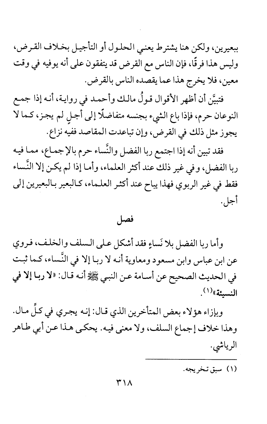 وأبو حنيفة يقول: الجنس بانفرادِه يحرمُ فيه النَّساء، وهو الرواية الأخرى عن أحمد واختياره، فلا يجوز بيع الشيء بمثله نَساءً. والقرض حجة على هذا القول، فإنه يجوز القرض، قرض الشيء بمثله مع التأخير. لكنْ أبو حنيفة يقول: أنا لا أجيز القرض إلا في المثليات، لا أجيزه إلا في المكيل والموزون. ومالك ليس عنده ربا الفضل، بل فيها ربا النساء، فهذا يجيب عن القرض.
