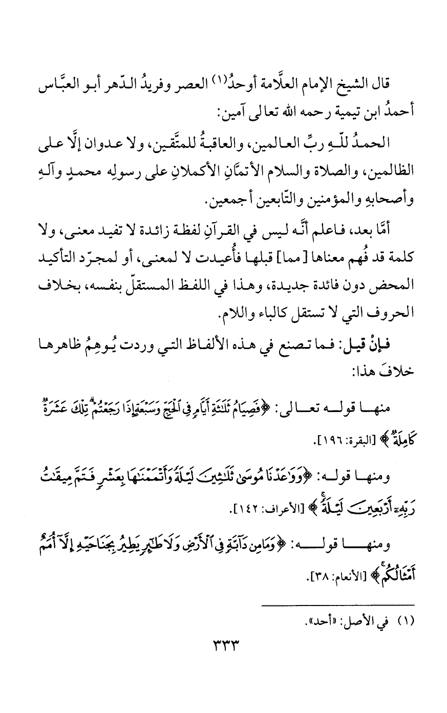 في أنه ليس في القرآن لفظة زائدة لا تفيد معنى